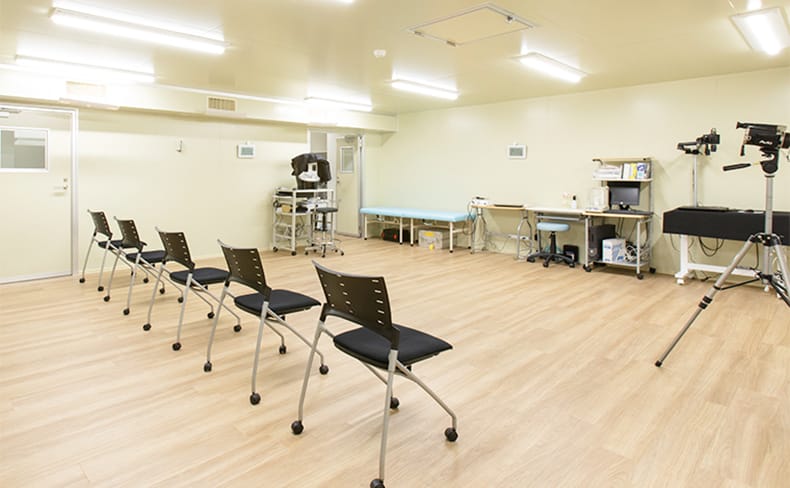 3Fには100名以上の試験に対応可能な試験会場を用意しております。スペースが必要な運動試験や、⻑時間の待機試験の実施環境も整っています。