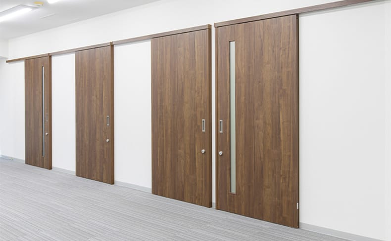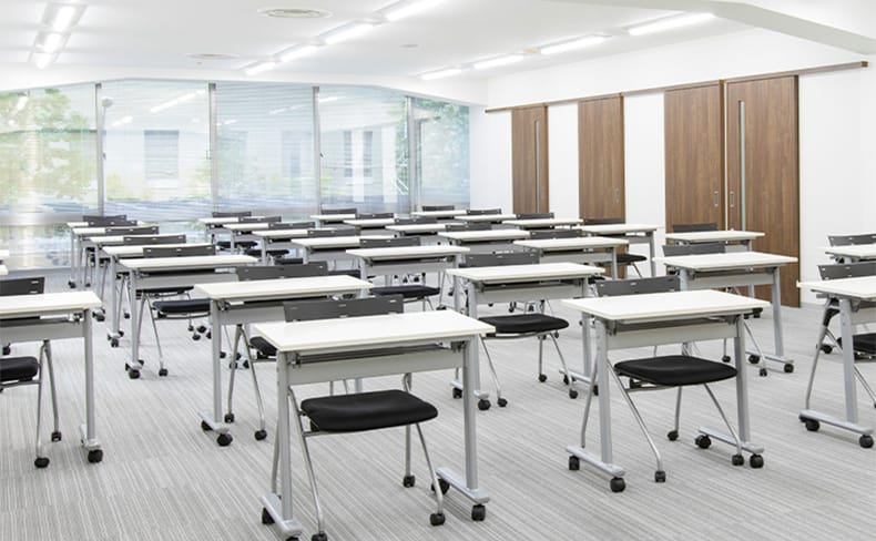 2Fには70名以上の試験に対応可能な試験会場を用意しております。スライディングウォールで空間を区切ることにより、検査に応じて人数の調整が可能です。
